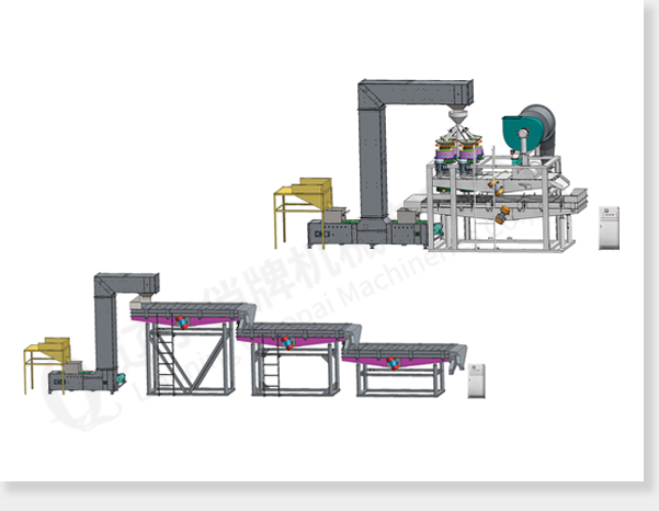 分級單元:上料斗,提升機和分級篩(數(shù)量取決于原料情況)。