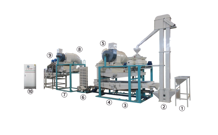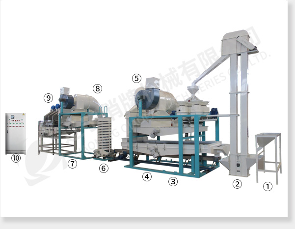 上料斗斗式提升機 脫殼、風選、分選主機 板簧輸送機 立式風選系統(tǒng) 螺旋提升機 振動輸送風選機 立式風選系統(tǒng) 靜電風選機 電氣控制柜